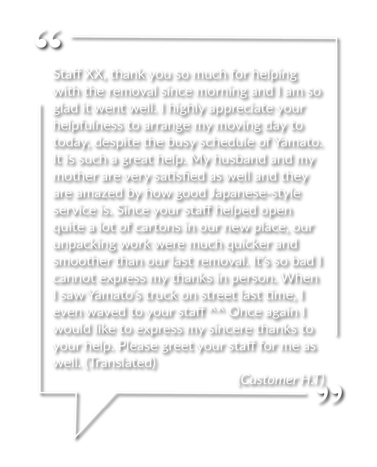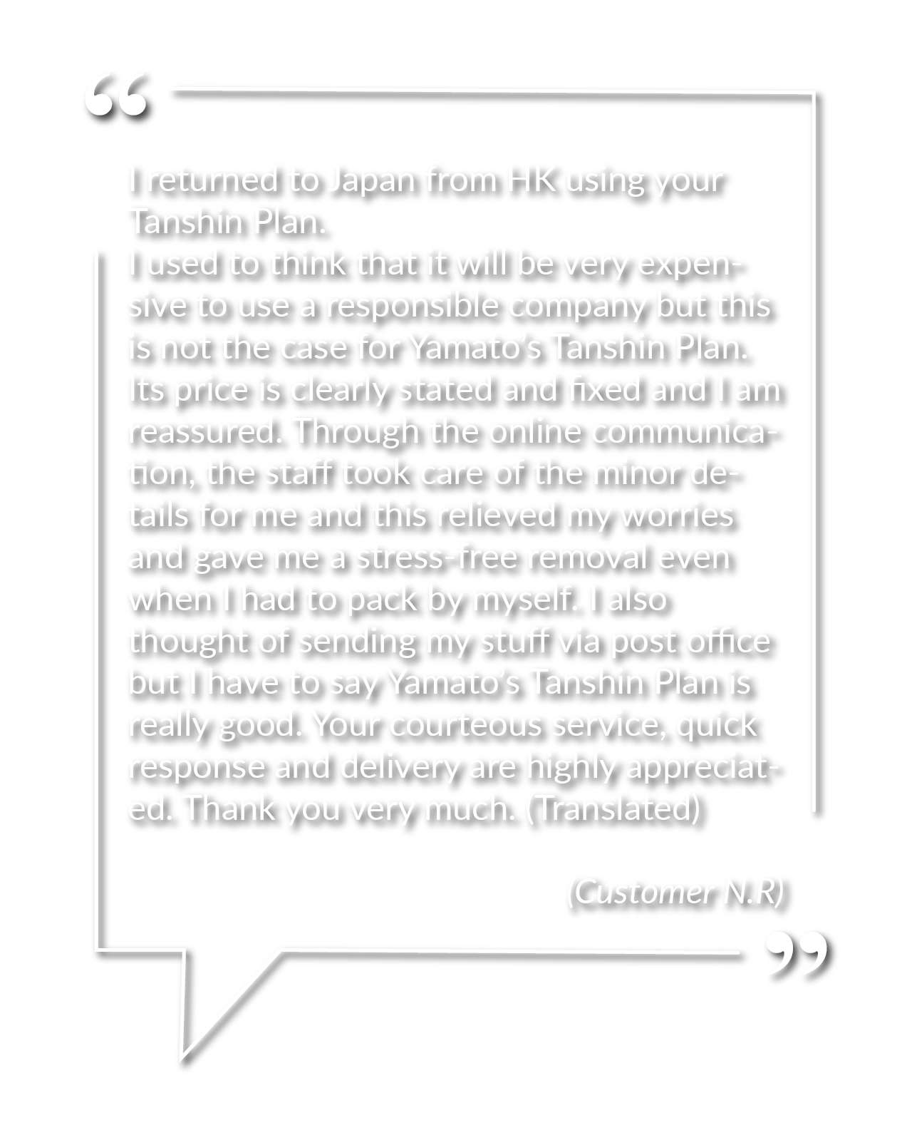 Our multilingual (English/Chinese/Japanese) staff provides high-quality Japanese-style moving service to you.