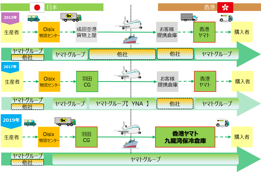 It is hereby notified that Yamato Logistics (HK) Ltd. under the YAMATO HOLDINGS (Headquarters: Hong Kong, Chairman: Kakikawa Yoshiki, hereinafter referred to as “Hong Kong Yamato”), expands the cold storage at its Kowloon Bay base in Hong Kong (license: 2851800046*1) , Oisix RA Daichi Co., Ltd. (hereinafter referred to as “Oisix RA Daichi”) “Oisix Hong Kong Limited” (Headquarters: Hong Kong, Chairman: Takahashi Daiju as “Oisix Hong Kong” Since 1st May 2019 as the delivery base of “Oisix Hong Kong”*2 is to provide transportation services for fresh food imported from Japan.